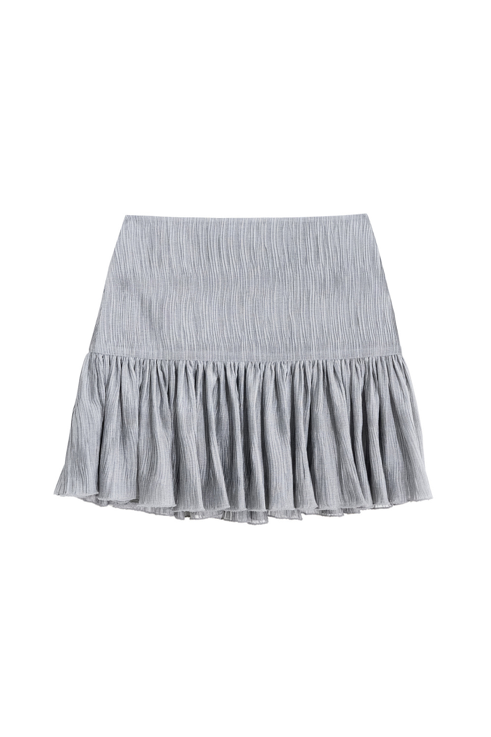 Chiffon mini skirt in textured fabric. Model of a fitted silhouette with a yoke.