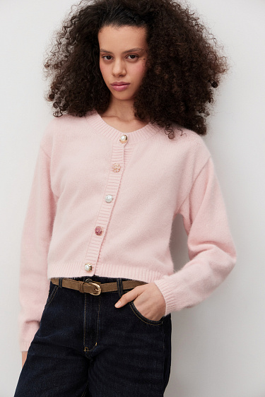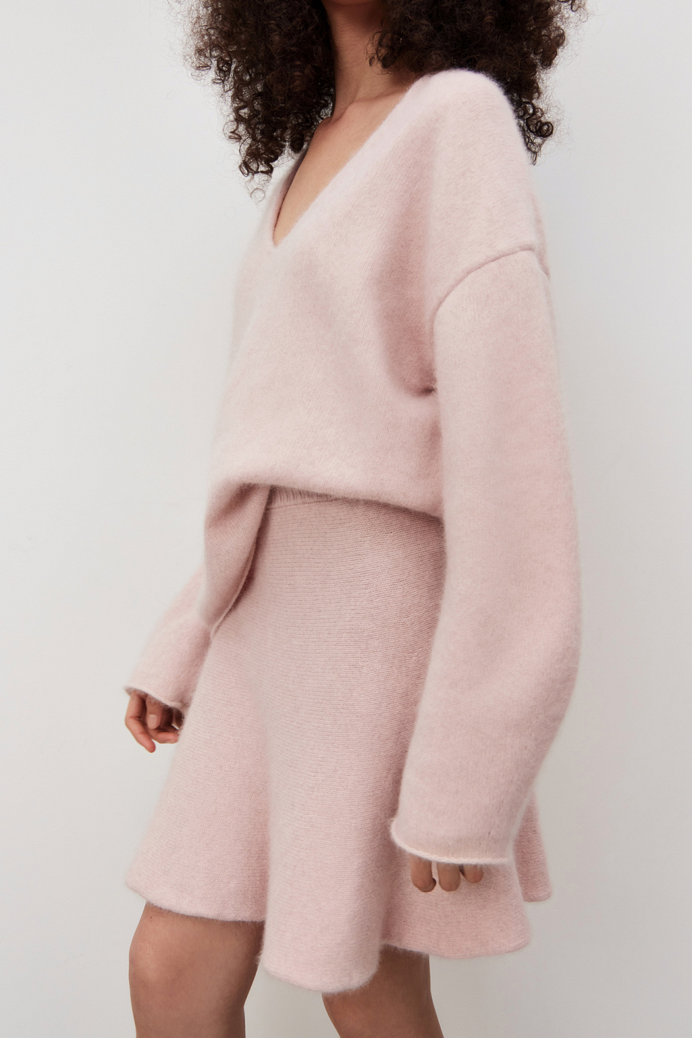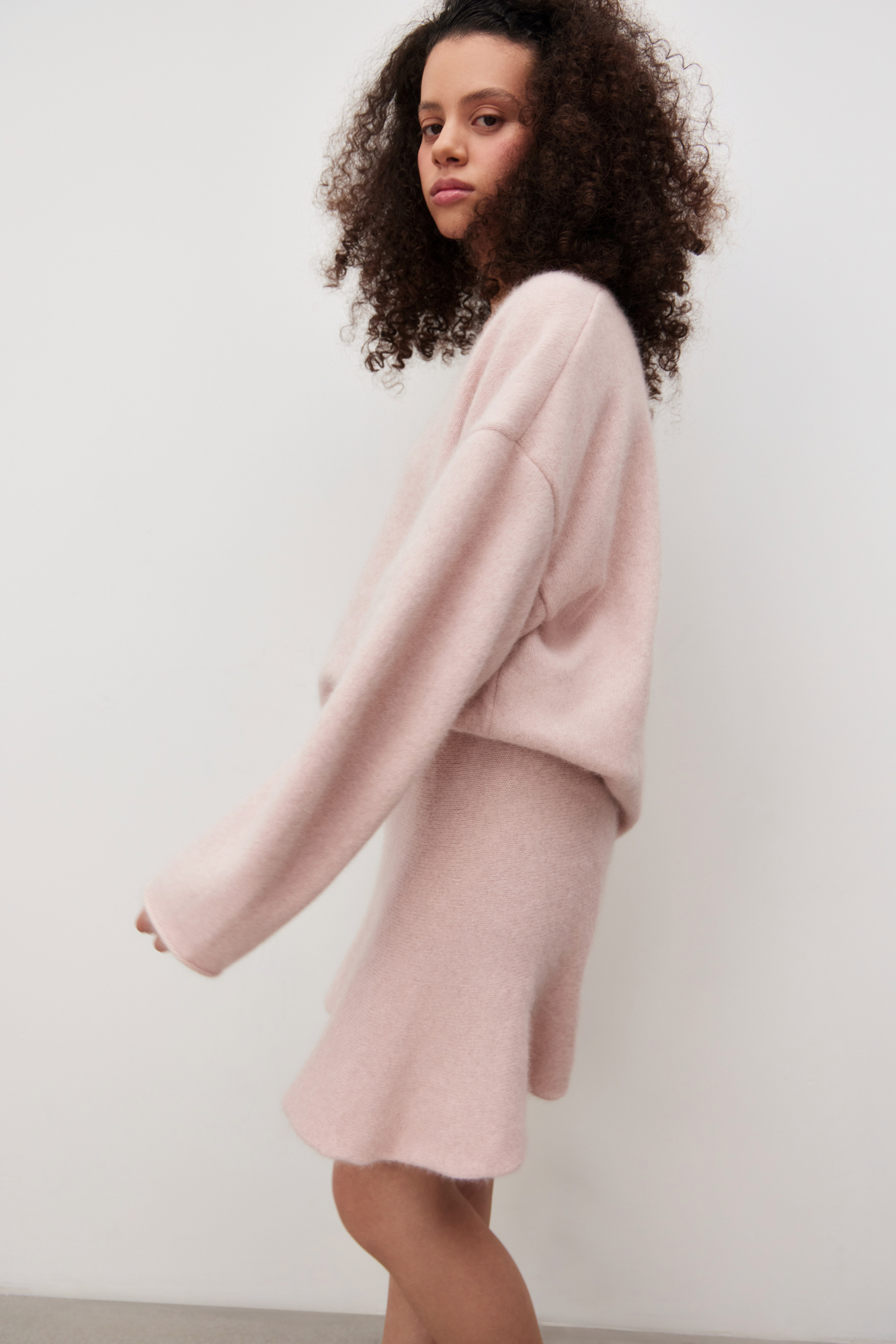 Mini-length knitted skirt made of wool and fox down. Half-sun model with elastic waistband.