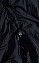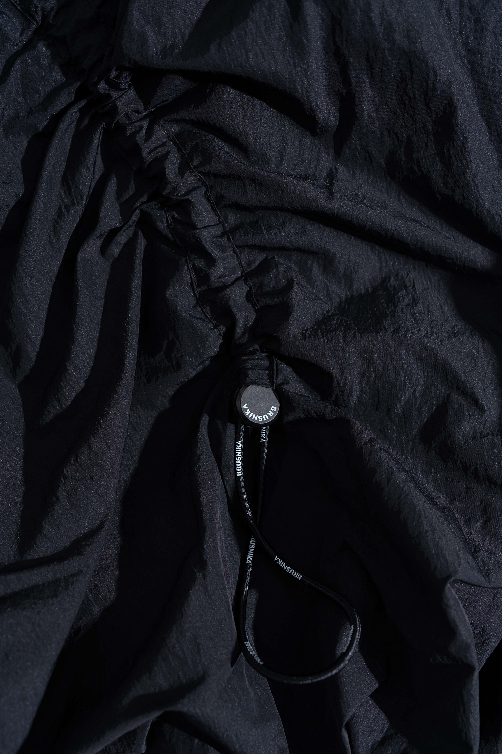Mini-length balloon skirt made of nylon. Model with an elasticated waistband and adjustable frills on the sides.