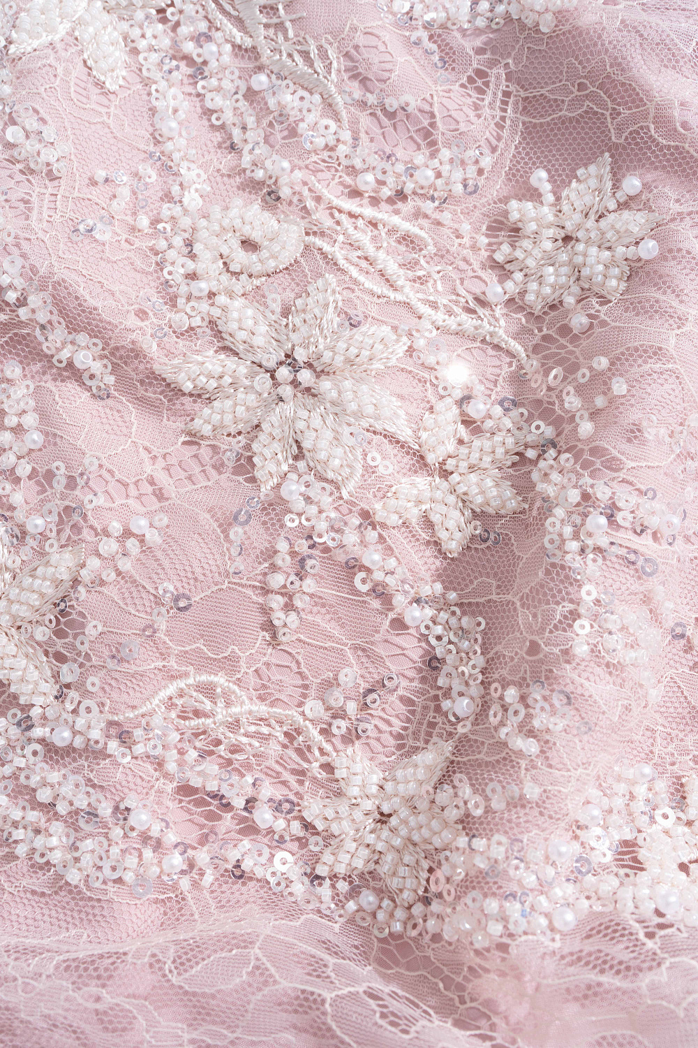 Mini-length skirt with floral patterns made of lace and beads. Concealed zip fastening. The product is lined.