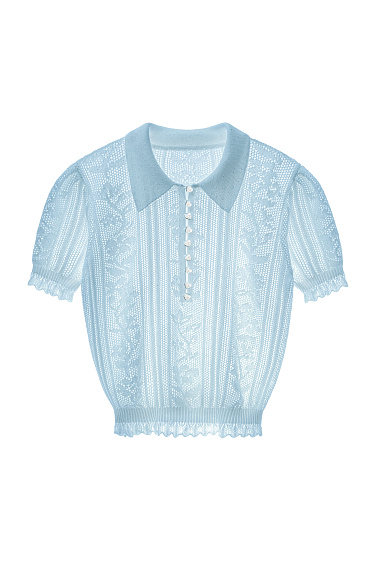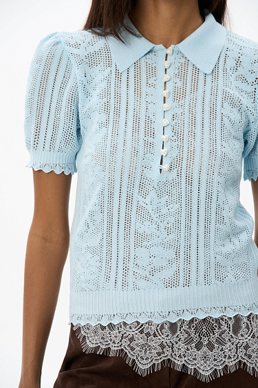 Openwork mini-length skirt made of viscose. The product is made of openwork weave with a design in the form of a floral ornament. Fitted silhouette with elastic ribbed waistband. The product is unlined.