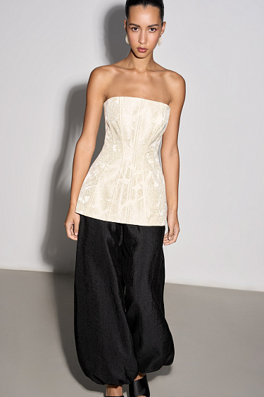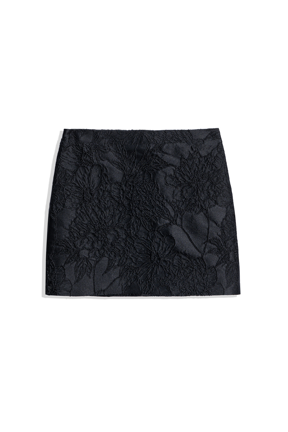 Mini-length skirt made of jacquard. Fitted model with zip fastening at the back. The product is lined.