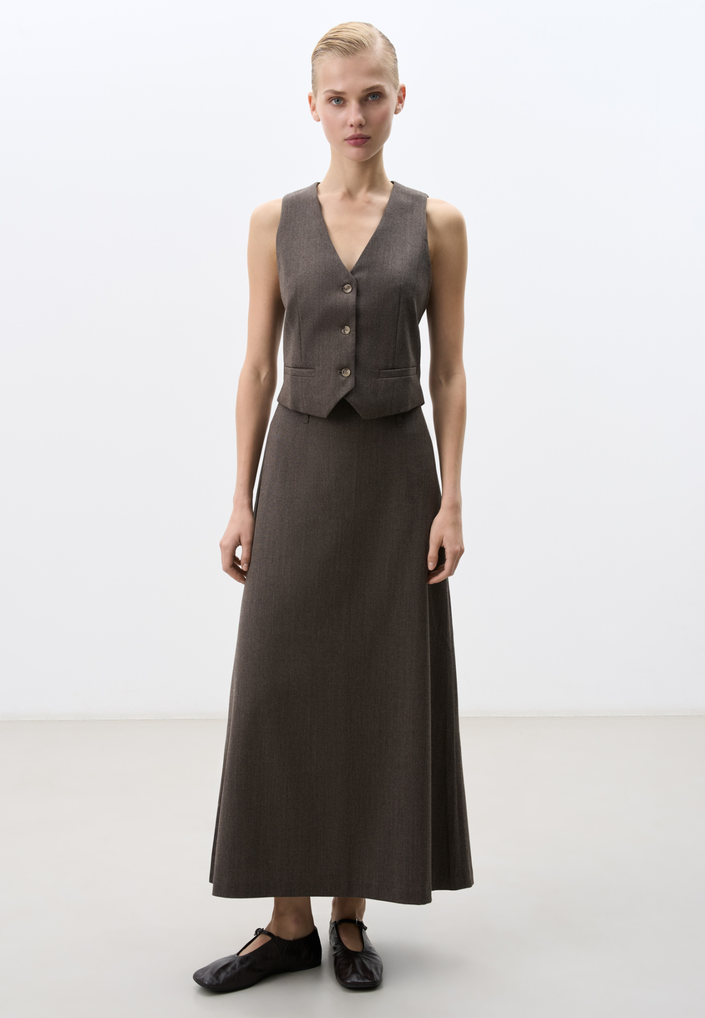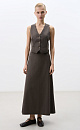Maxi length skirt made of wool. A-line design with belt loops and a side zip fastening.