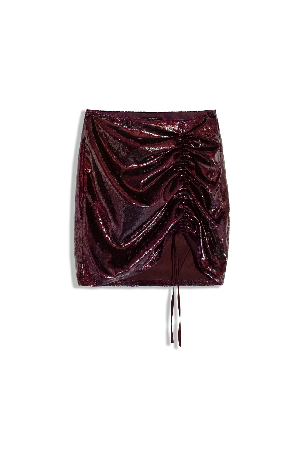 Mini skirt made of shiny fabric. Drawstring model. Side clasp. The product is lined.