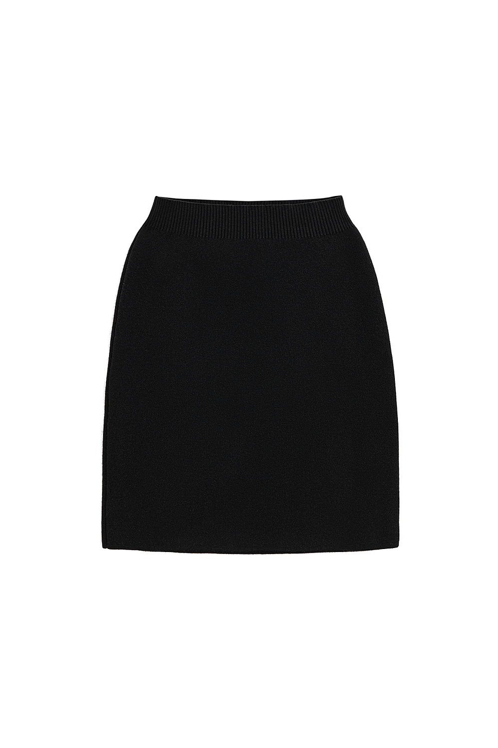 Mini-length knitted skirt made of wool blend with cashmere added. The model has a fitted silhouette with an elastic ribbed waistband.