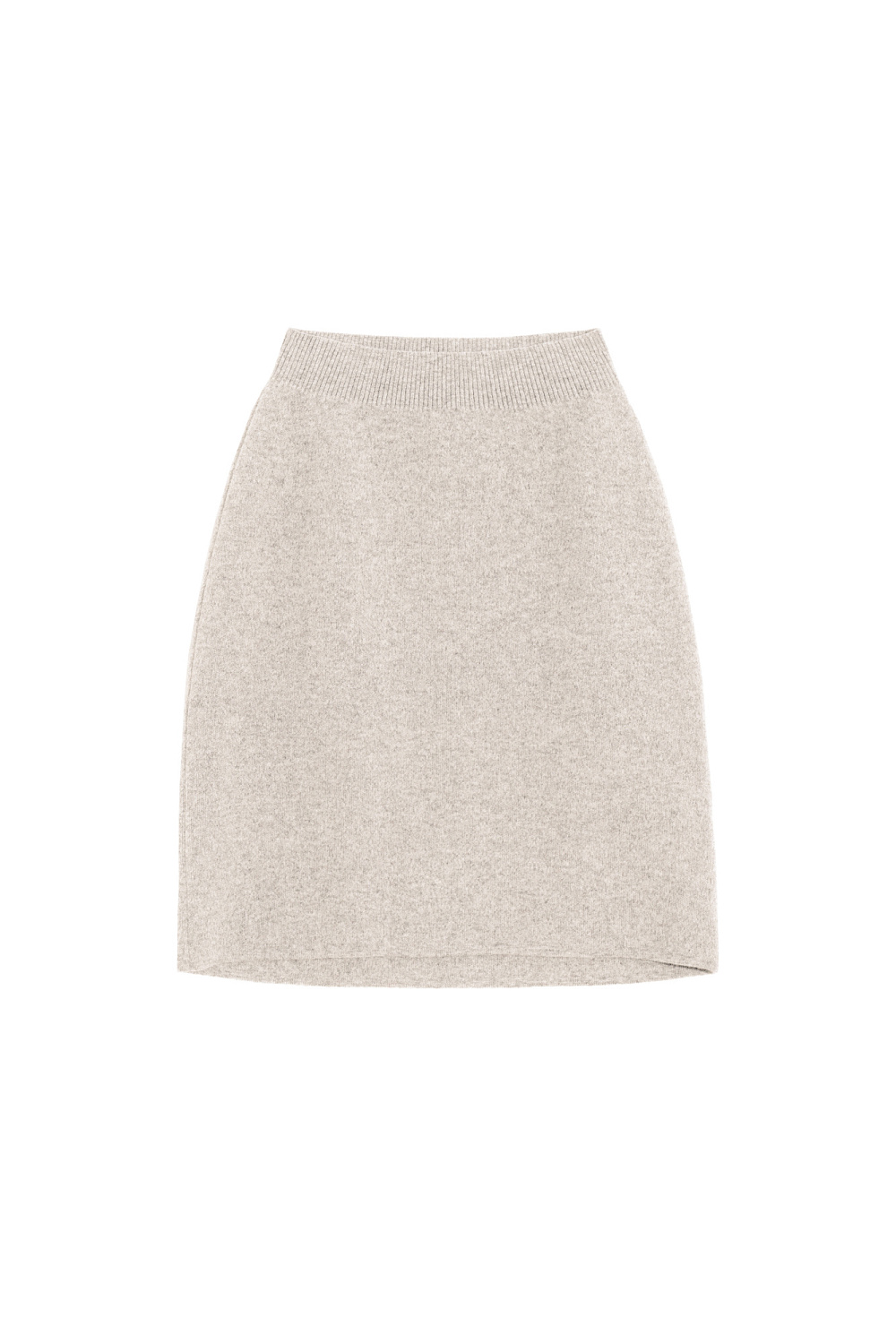Mini-length knitted skirt made of wool blend with cashmere added. The model has a fitted silhouette with an elastic ribbed waistband.