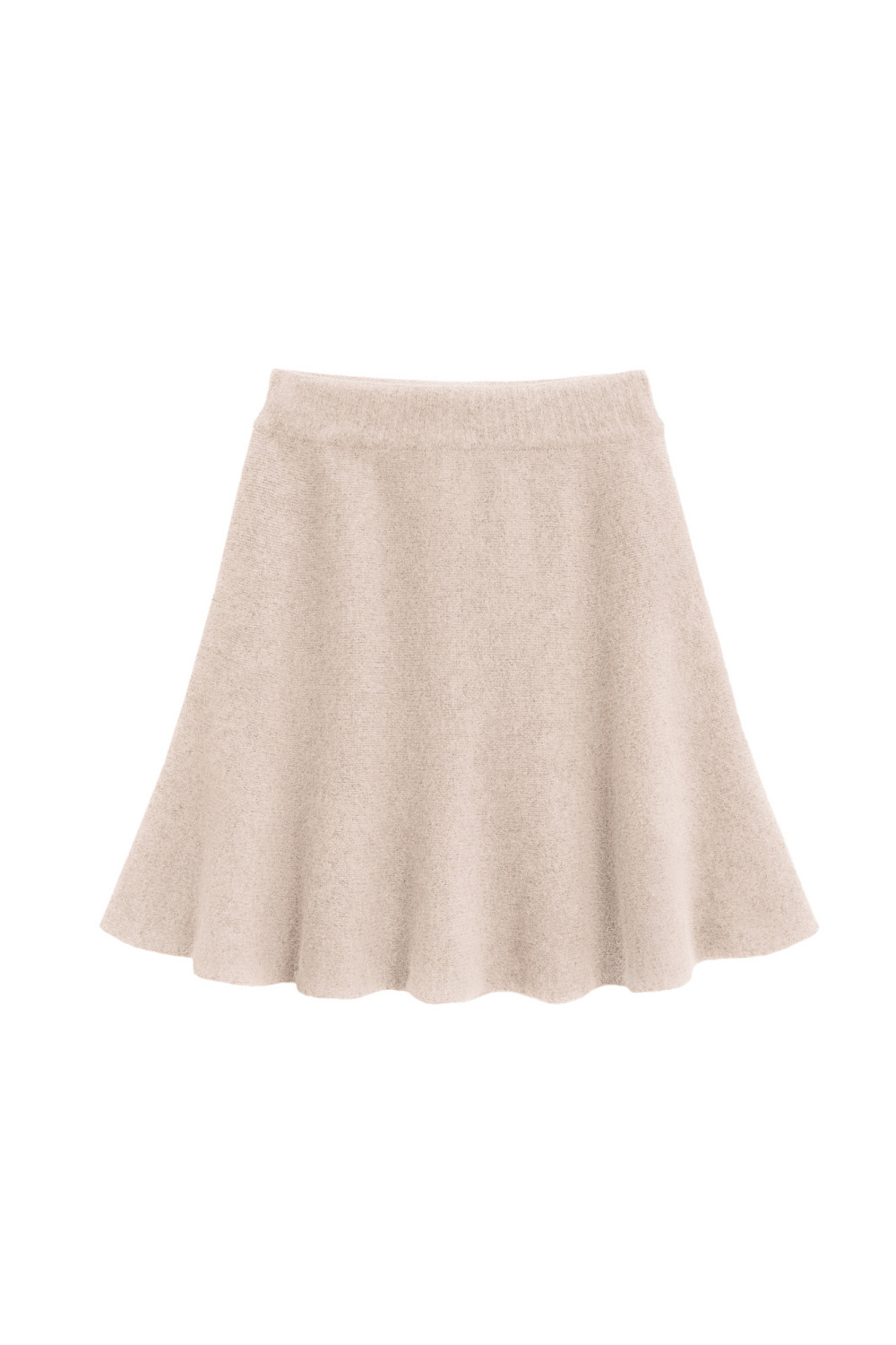 Mini-length knitted skirt made of wool and fox down. Half-sun model with elastic waistband.