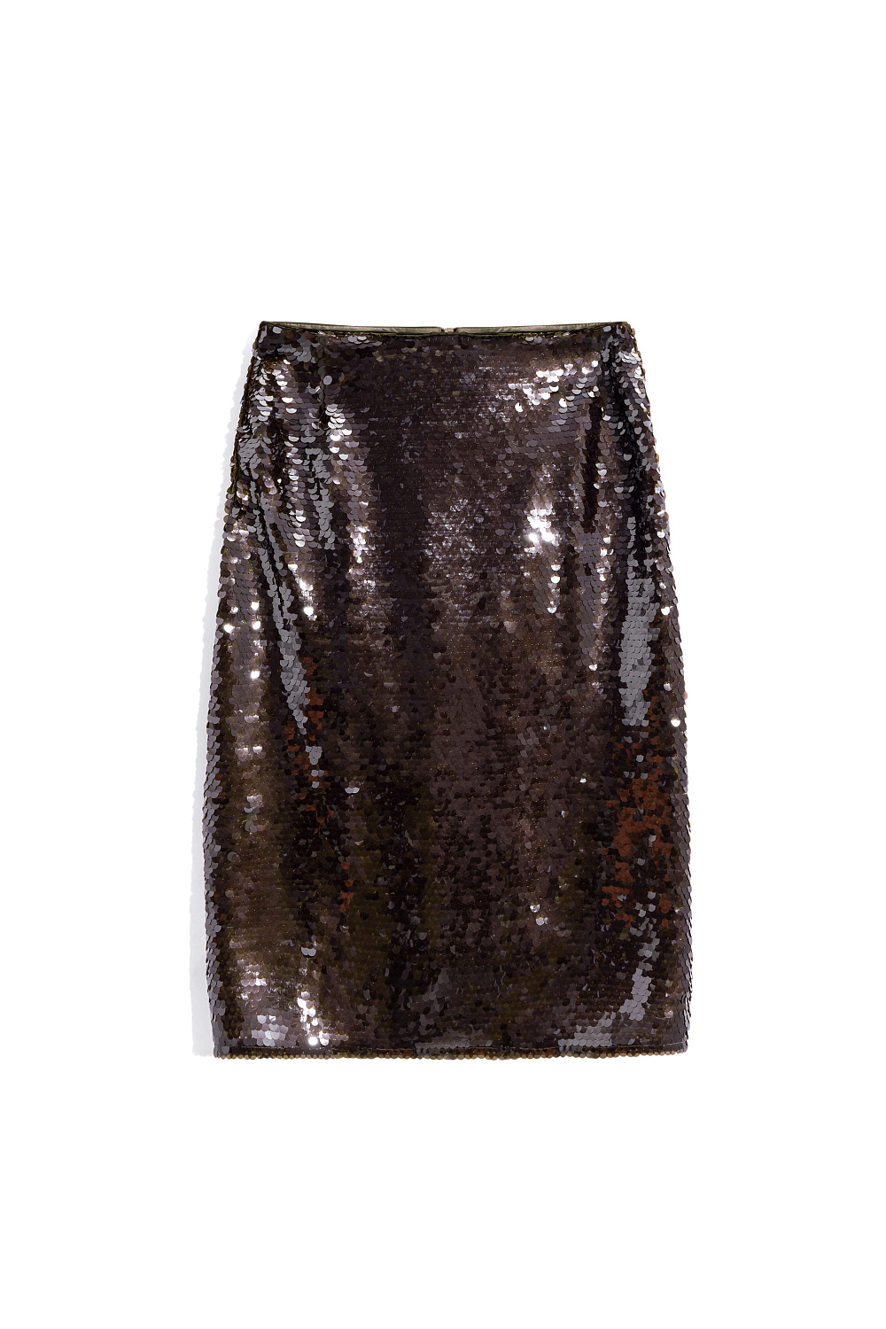 Midi length skirt decorated with sequins. Zip fastening at the back. The product is lined.