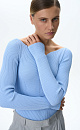 Ribbed viscose knitted bodysuit with long sleeves and a curved neckline.