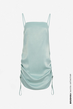Viscose slip dress with thin straps, adjustable side drawstring and open back.