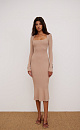 Knitted dress with a square neckline. Midi length. Decorative buttons and small slit at the cuffs.
