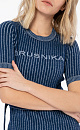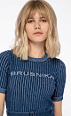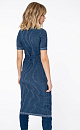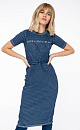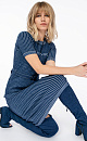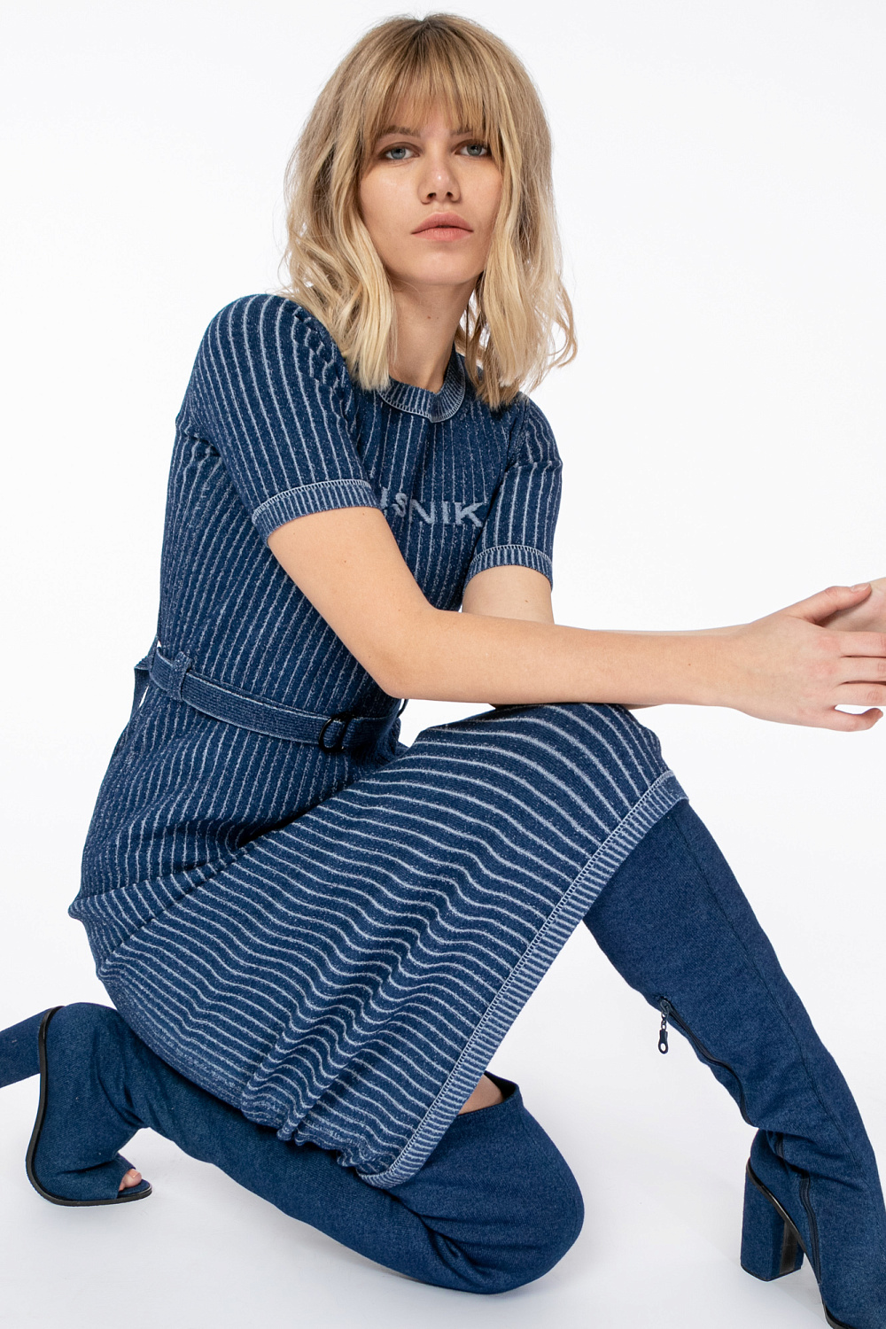 Cotton dress under jeans with the inscription Brusnika on the chest. Short sleeve. Belt at the waist. Round neckline.