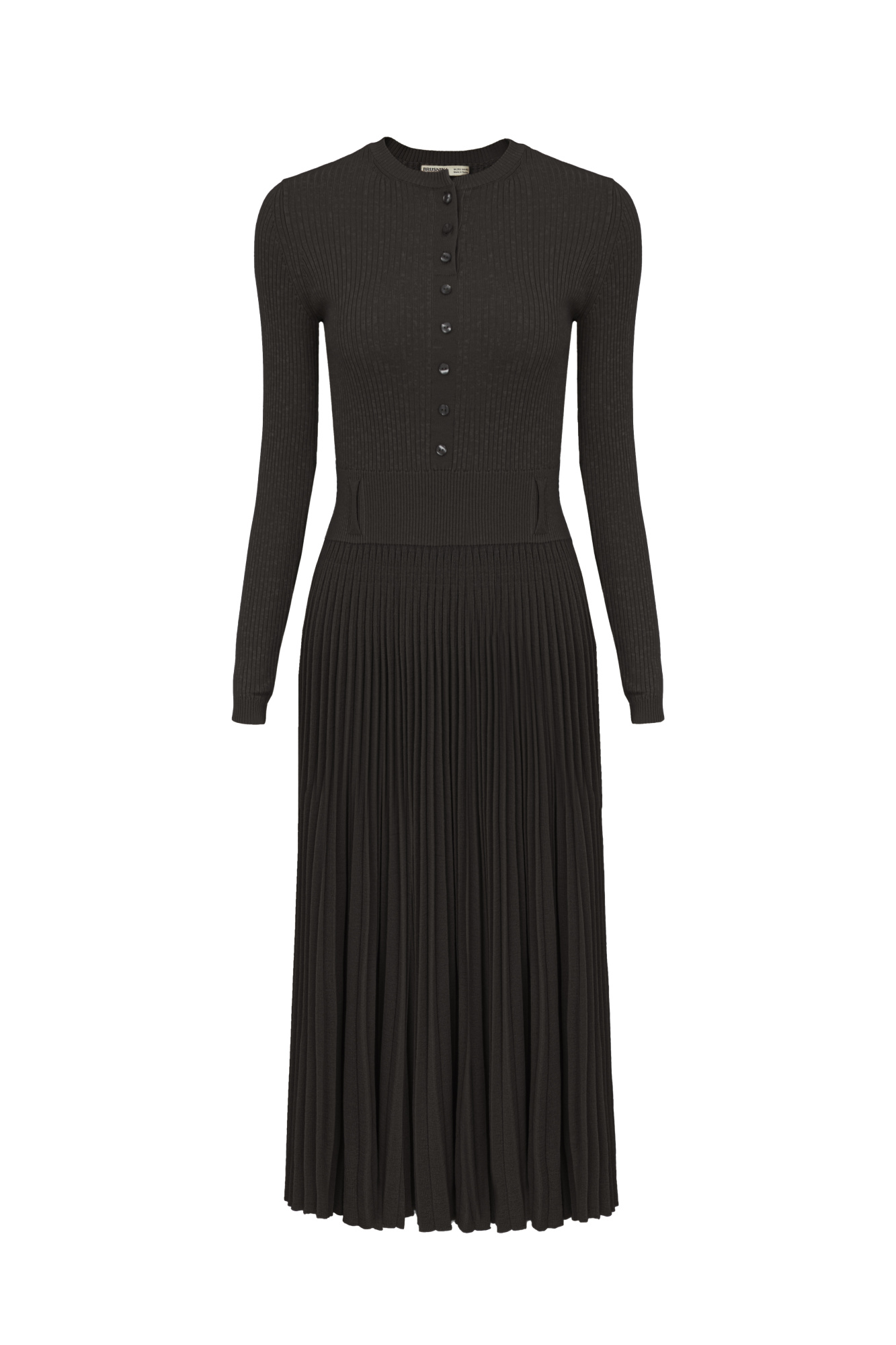 Wool and viscose midi dress with a pleated skirt, a buttons on the chest and an underskirt.
