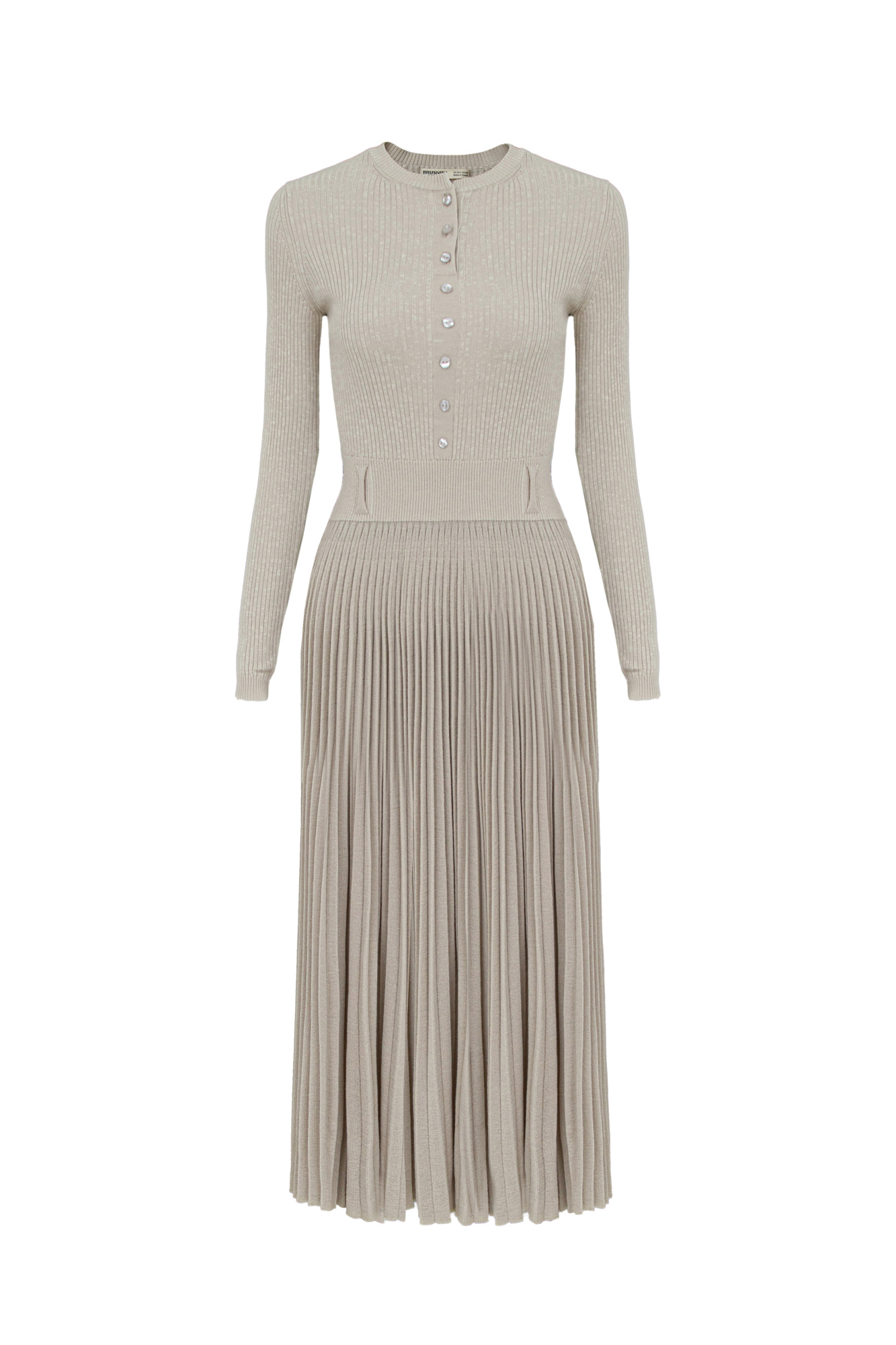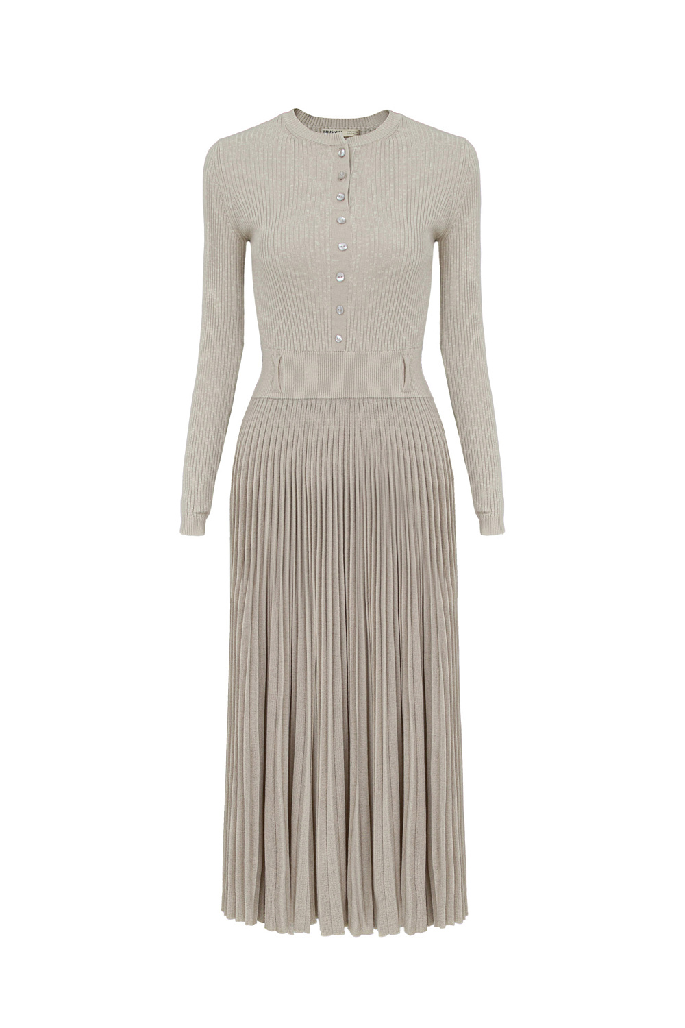 Wool and viscose midi dress with a pleated skirt, a buttons on the chest and an underskirt.