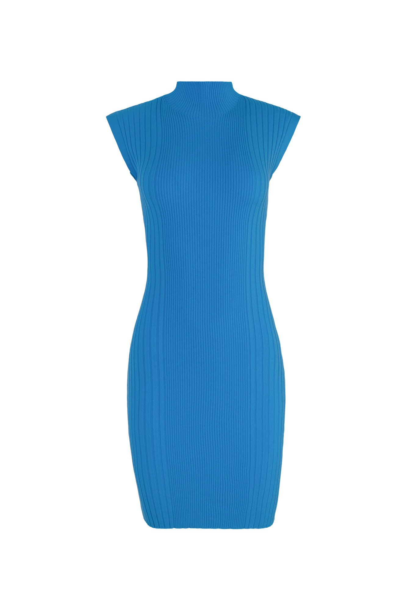 Wide rib sleeveless mini dress with high neck.
