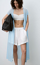 Calf-length wrap tunic dress with belt.