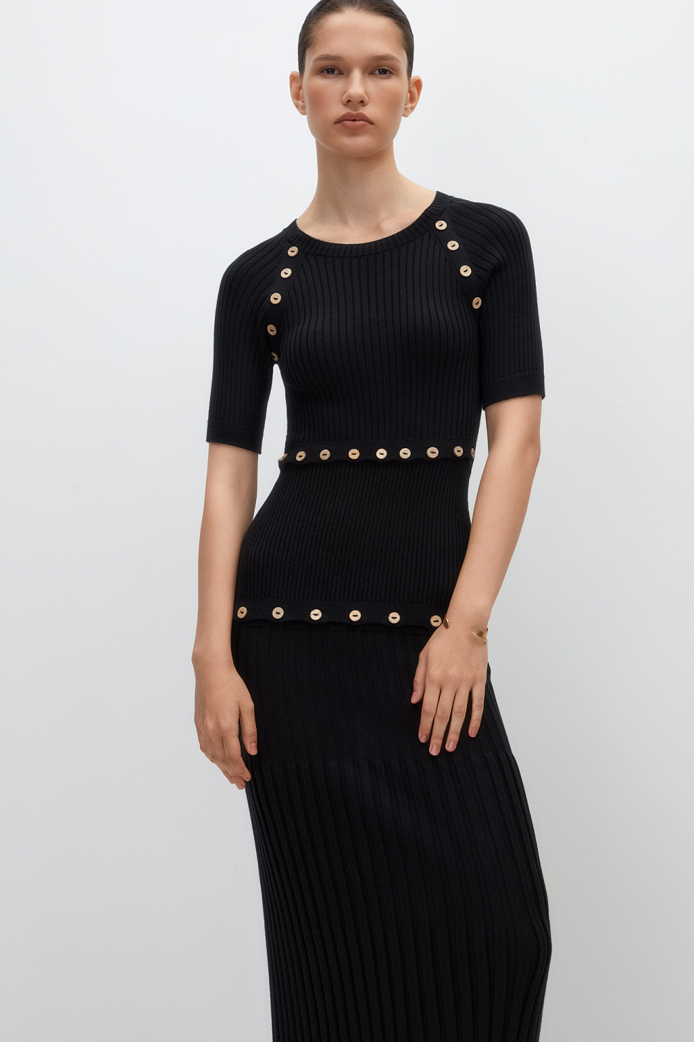 Transformer cotton dress with a pleated skirt and short sleeves. You can wear a crop top separately.