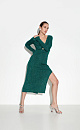 Viscose bodycon midi dress with lurex. Features side slit and deep V-neck.