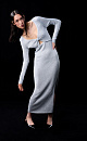 Viscose bodycon midi dress with lurex. Features side slit and deep V-neck.