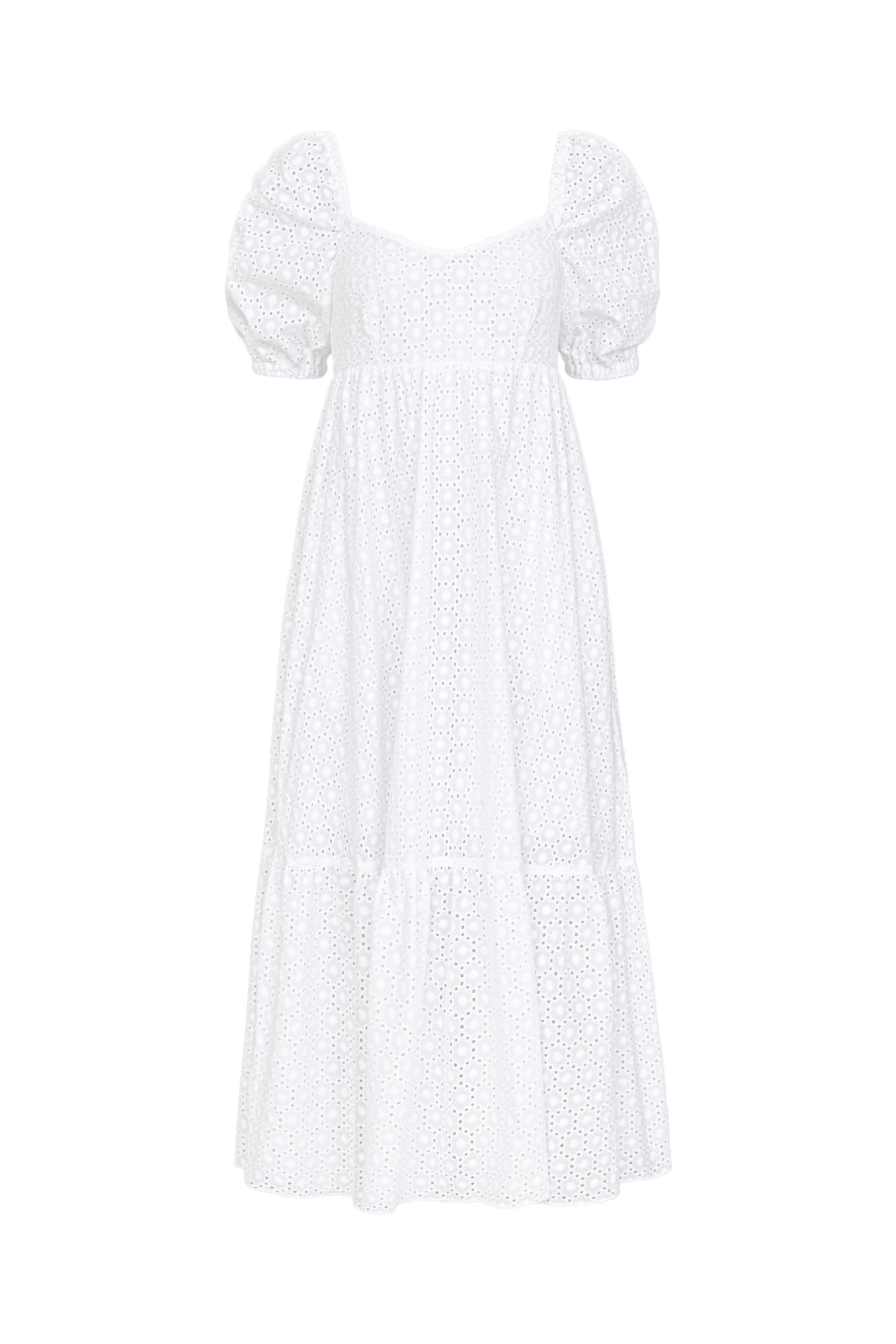 100% cotton dress with puffed sleeves and high waist.
