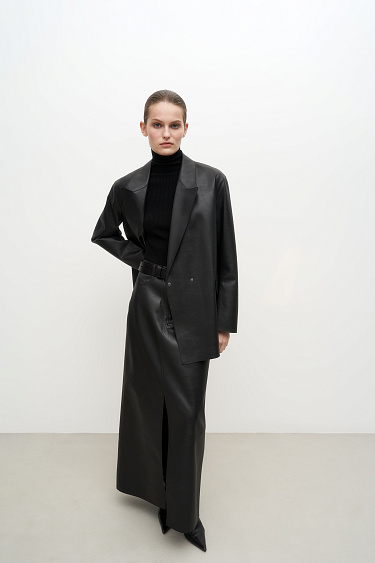 Wool blend knitted dress. Fitted midi dress with a high front slit and zip fastening.
