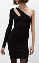 Mini-length knitted viscose dress with open shoulder, double strap and long sleeves.