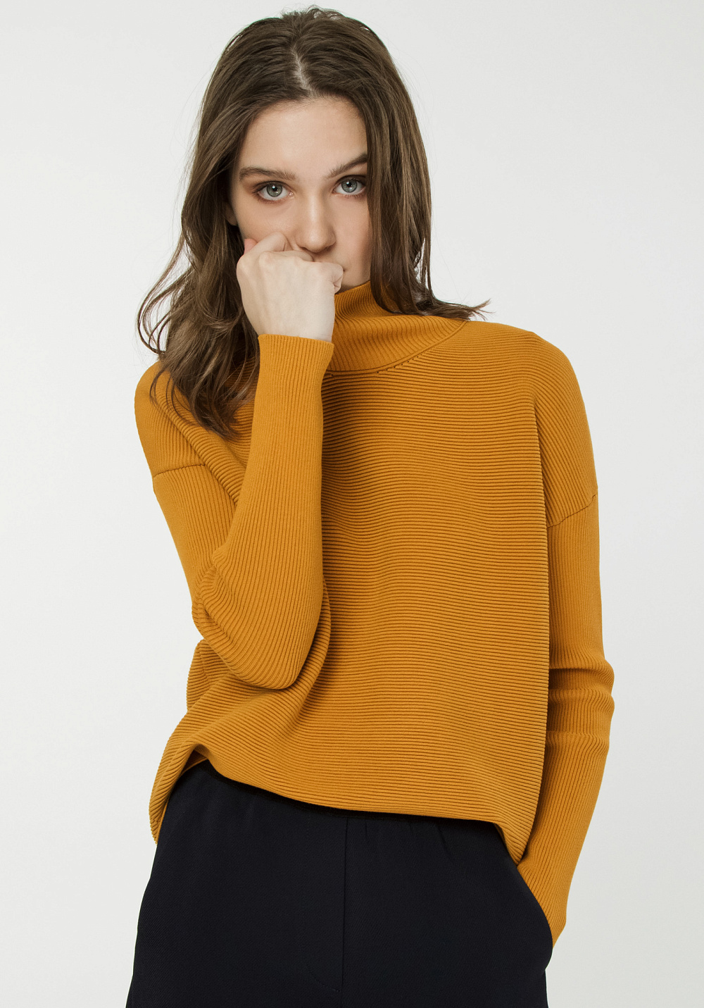 Textured knit jumper with a high neck, dropped shoulders and long sleeves.