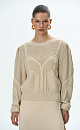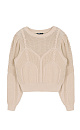 Cotton jumper with round neck and puff sleeves. Openwork pattern with cable-knit details.