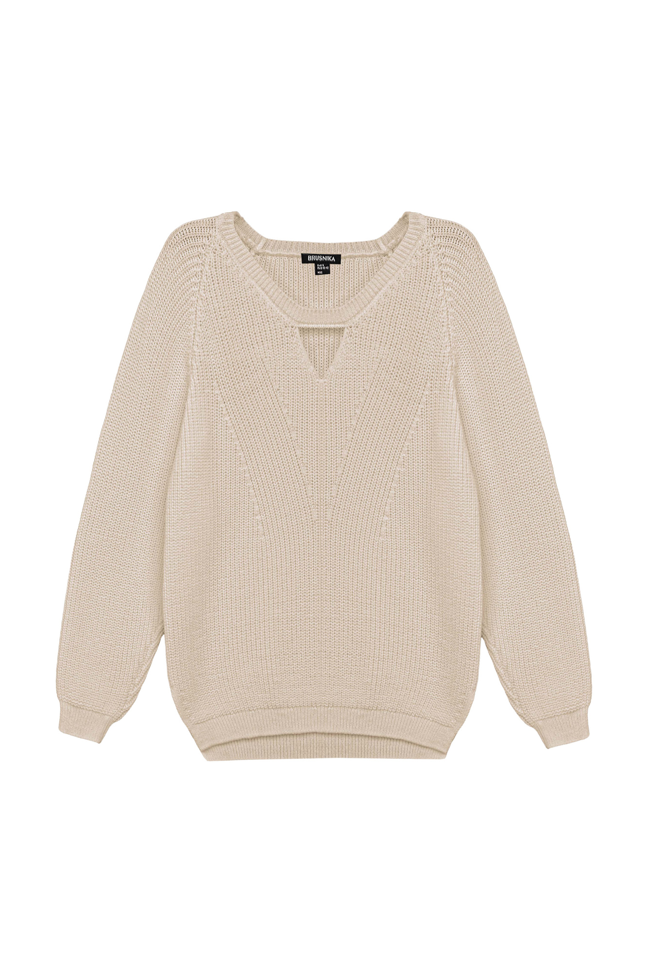 Jumper made of cotton with added elastane. Loose silhouette model with raglan sleeves, cuffs and a neckline.