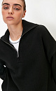 100% cotton jumper with stand-up collar and zip closure. Ribbed cuffs and hem.