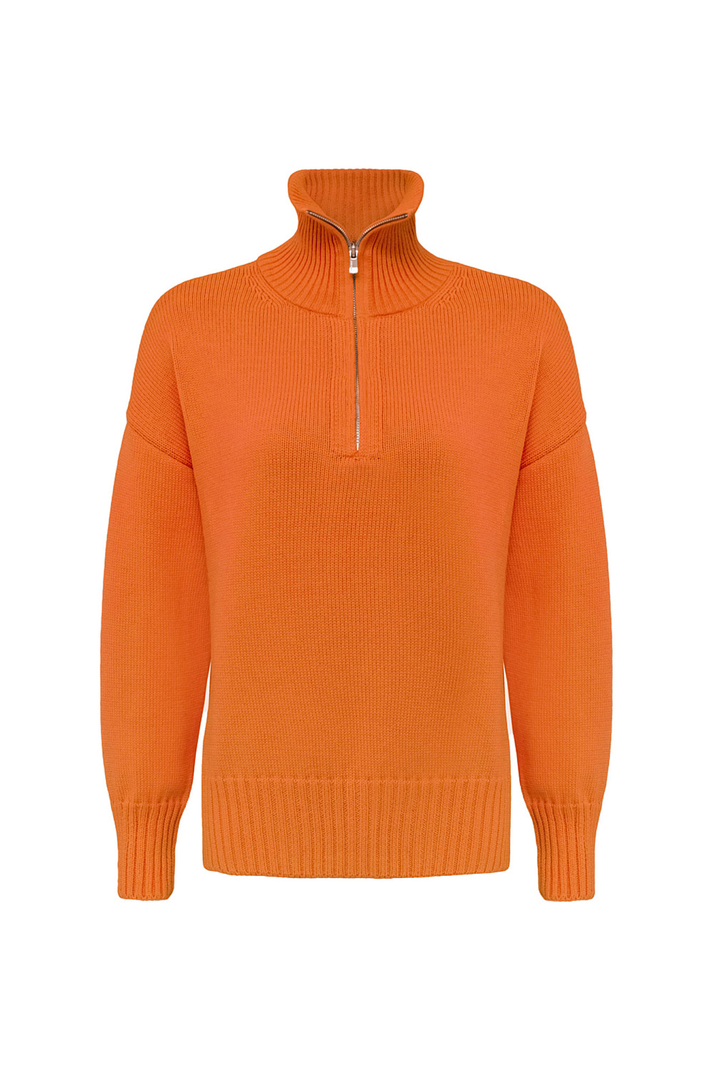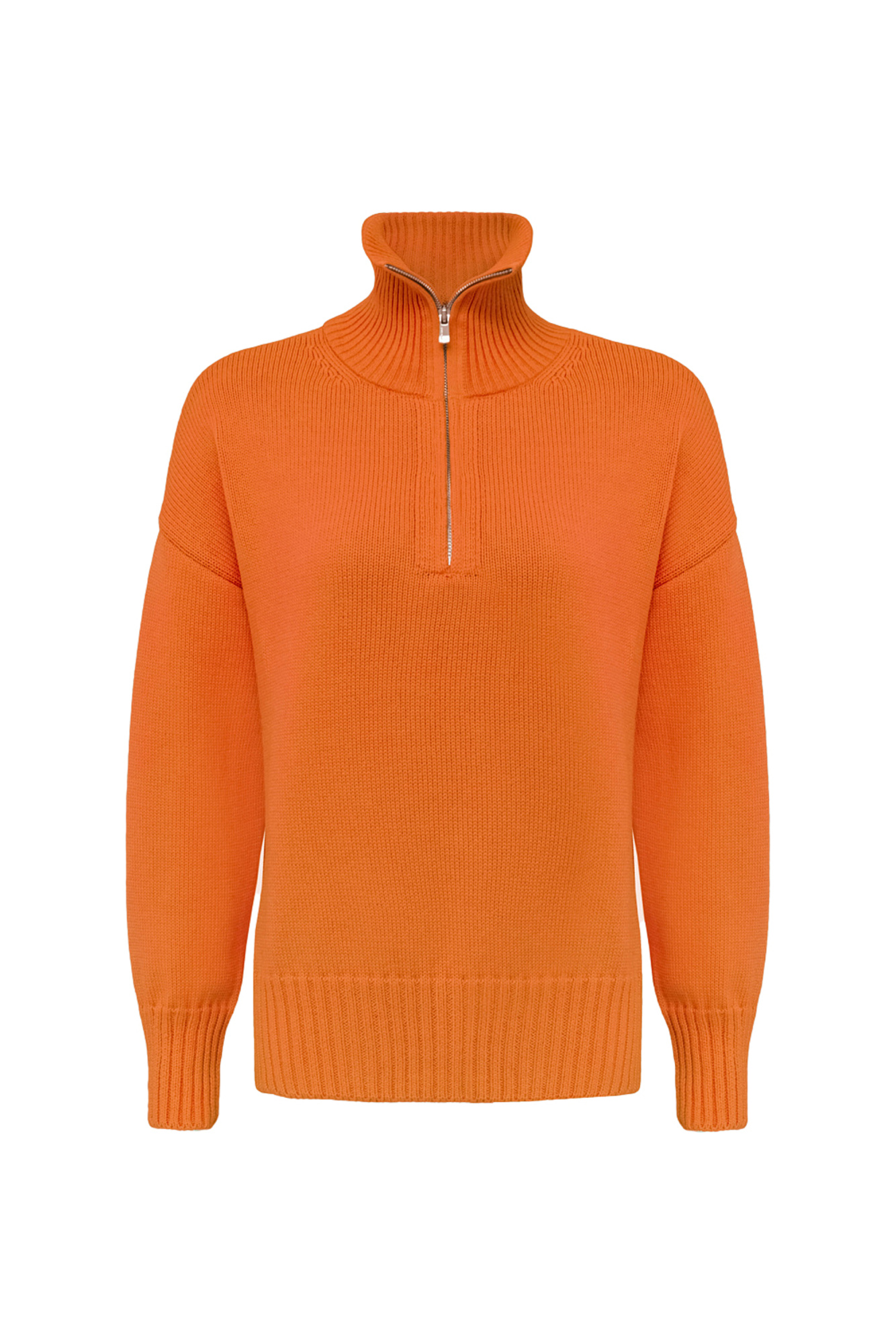 100% cotton jumper with stand-up collar and zip closure. Ribbed cuffs and hem.