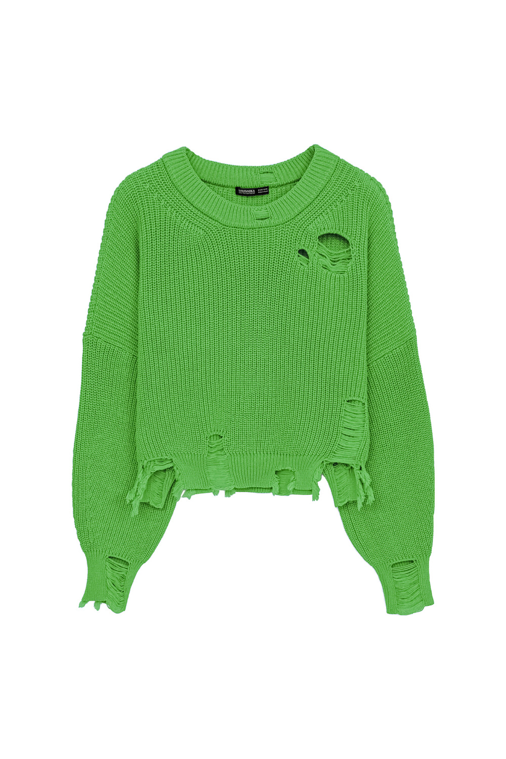 100% cotton jumper with dropped shoulders and grunge style slits.