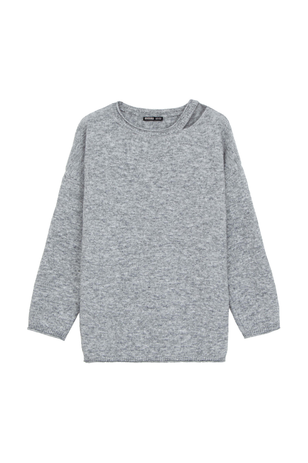 Alpaca wool jumper with cut-out shoulder. Loose silhouette with a dropped shoulders and ribbed edges.