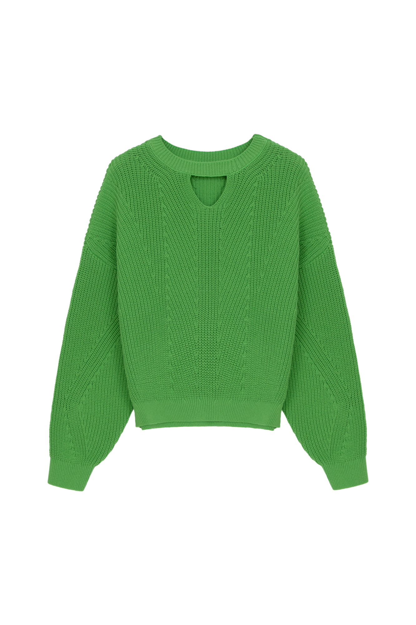 Knitted cotton jumper with neckline cutout.