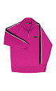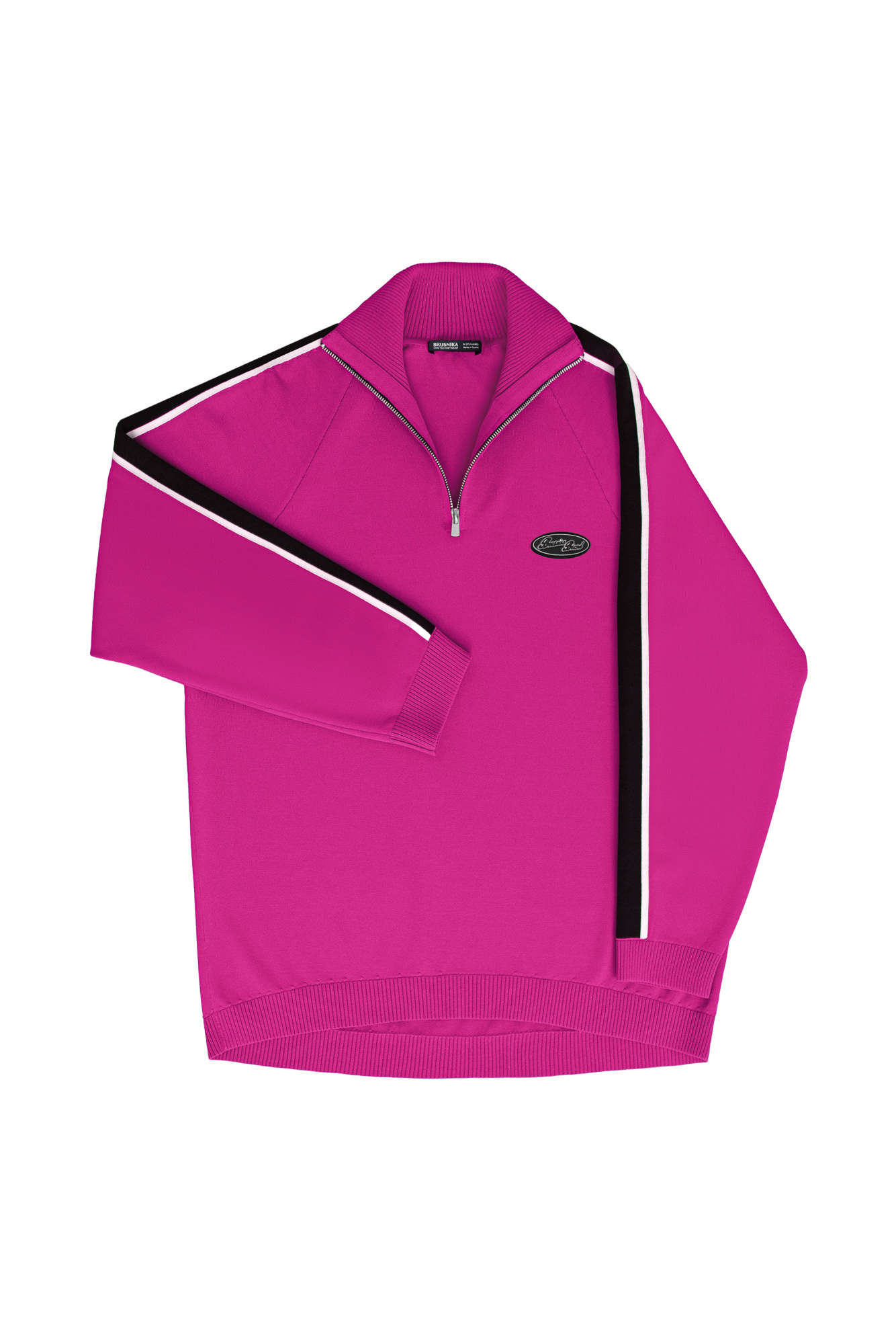 Viscose jumper. Stand-up collar with zipper and wide two-color stripes on the sleeves.