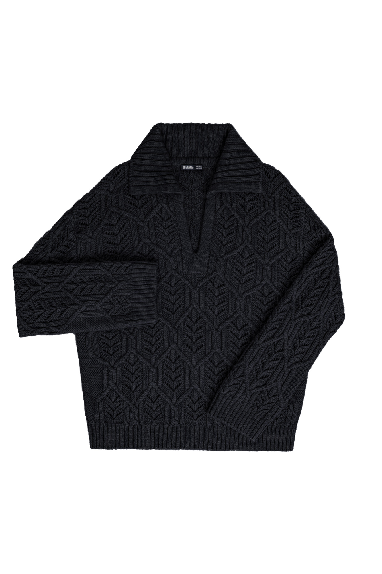 Openwork alpaca wool blend jumper with polo collar and V-neck. Adjustable cuffs on the sleeves.