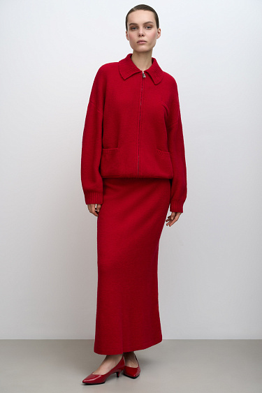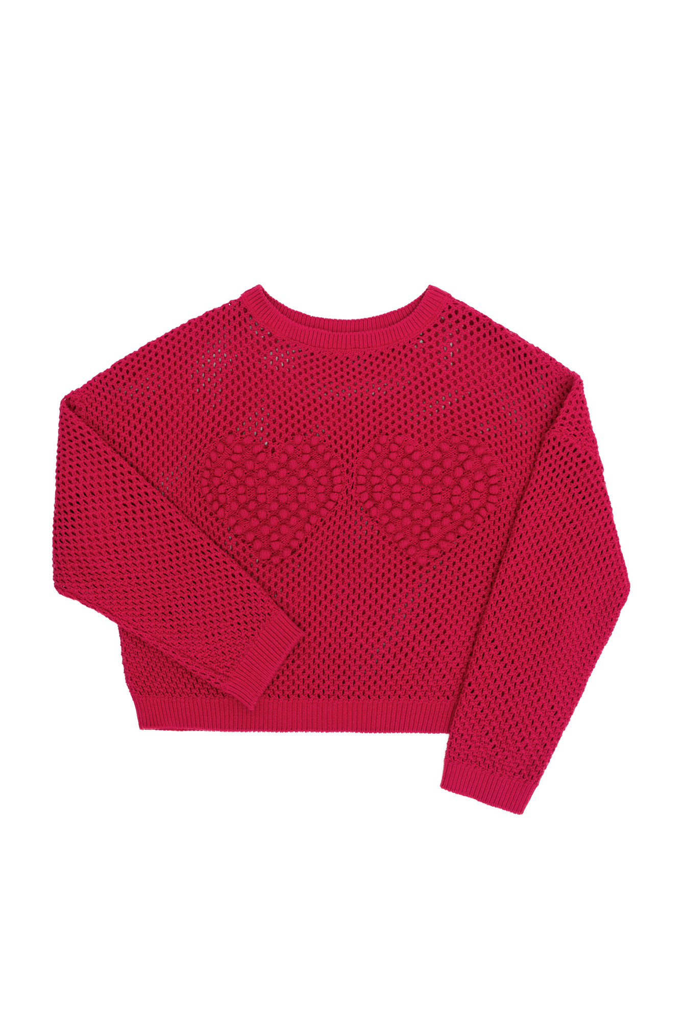 Cotton knitted jumper. Loose silhouette model with dropped shoulders and hearts on the chest.