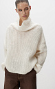 Mohair knitted jumper. The model has a loose silhouette with dropped shoulders and a high, voluminous collar.