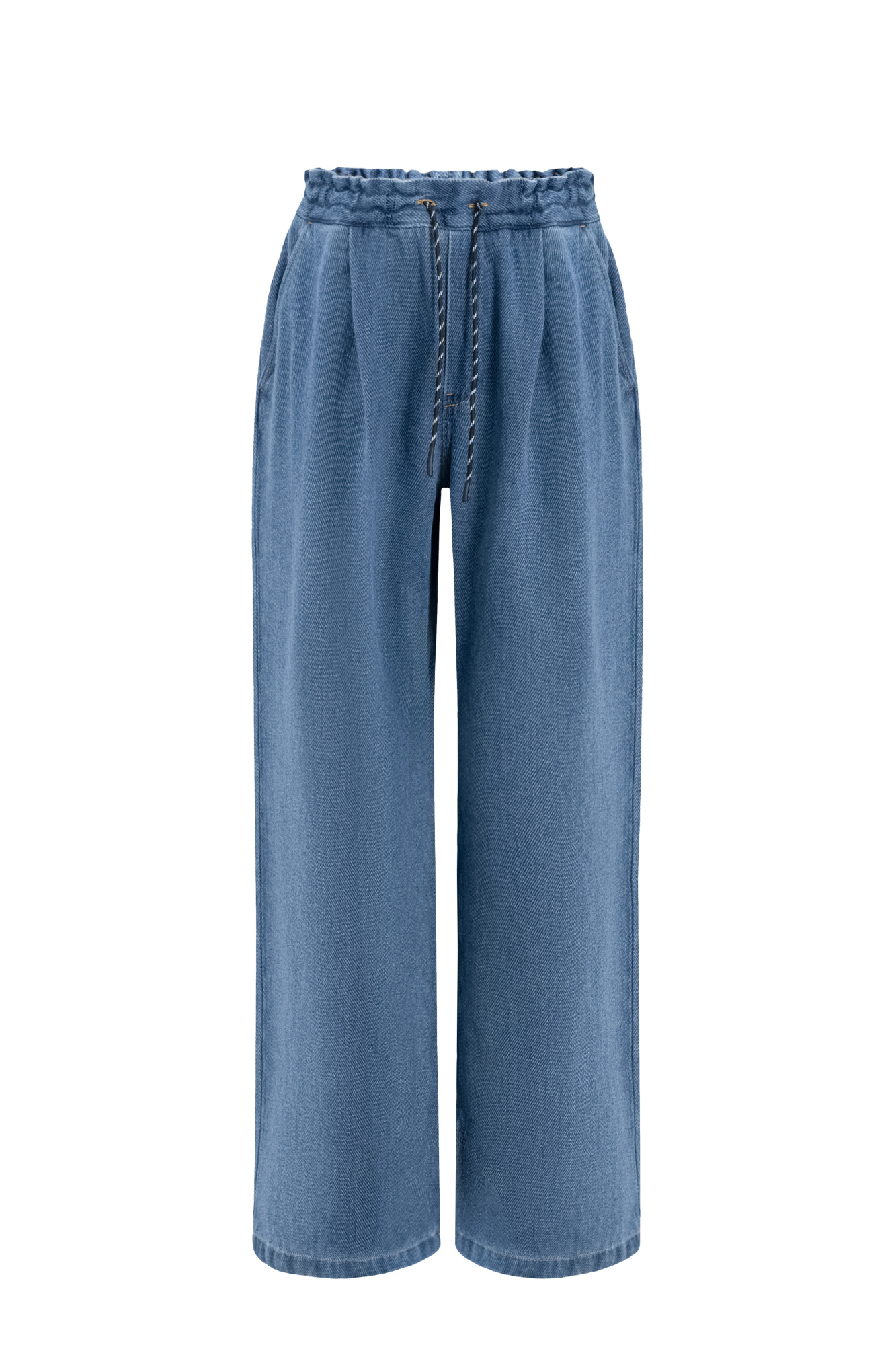 100% cotton drawstring jeans with diagonal rib texture. Straight cut model with high waist. 2 side pockets.