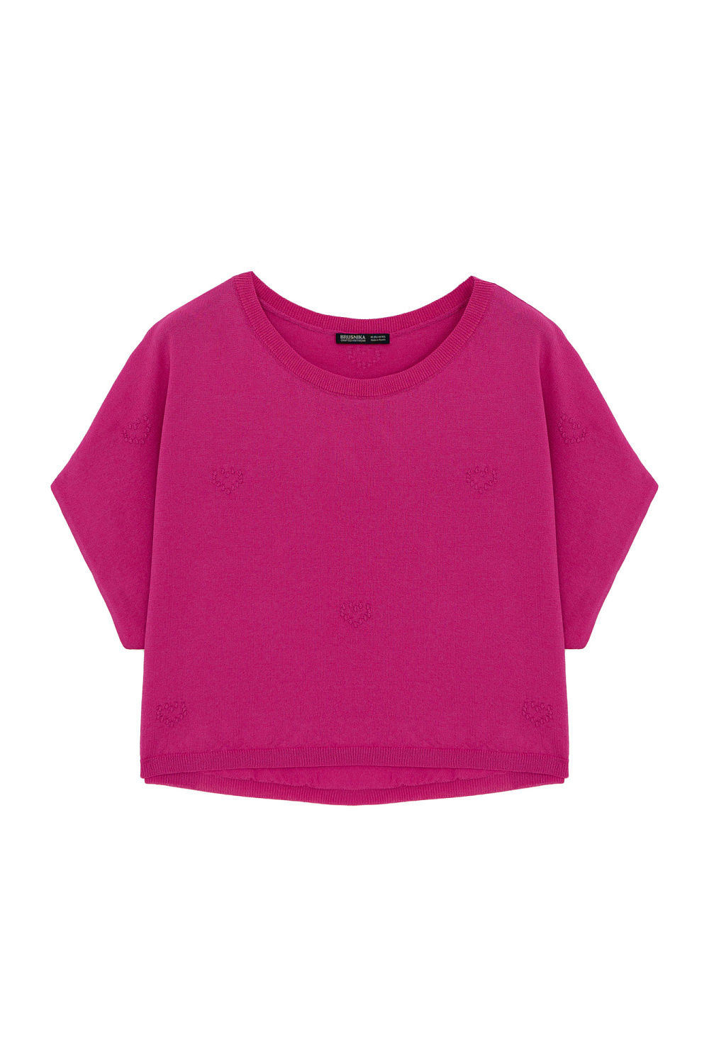 Knitted viscose T-shirt with a heart pattern and short sleeves.
