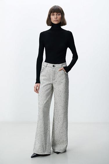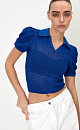 Openwork viscose T-shirt with a polo collar and short sleeves.