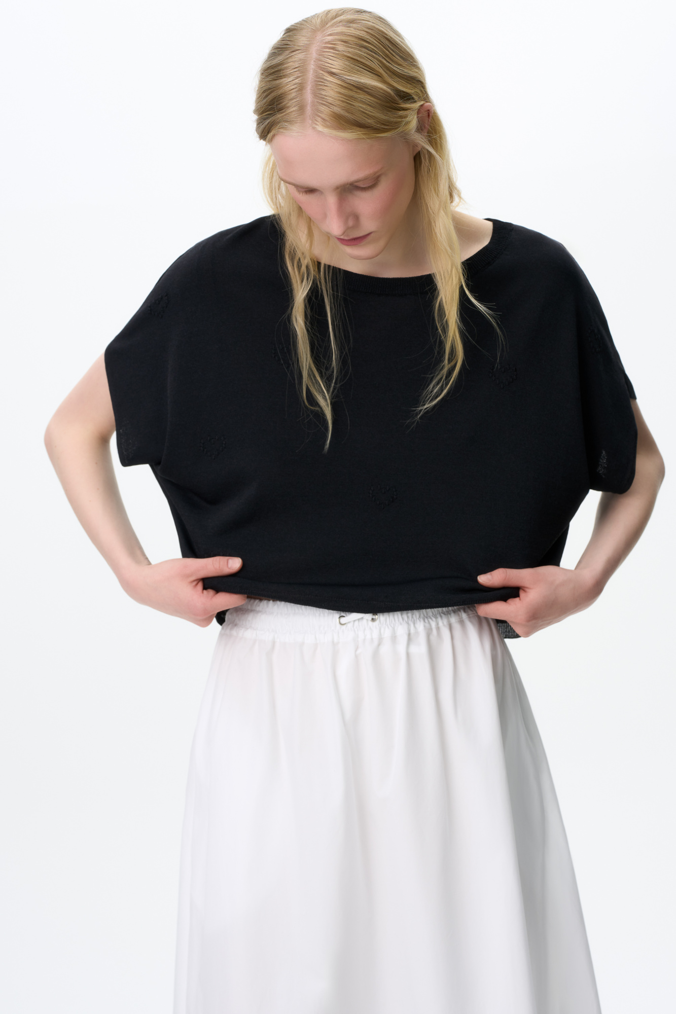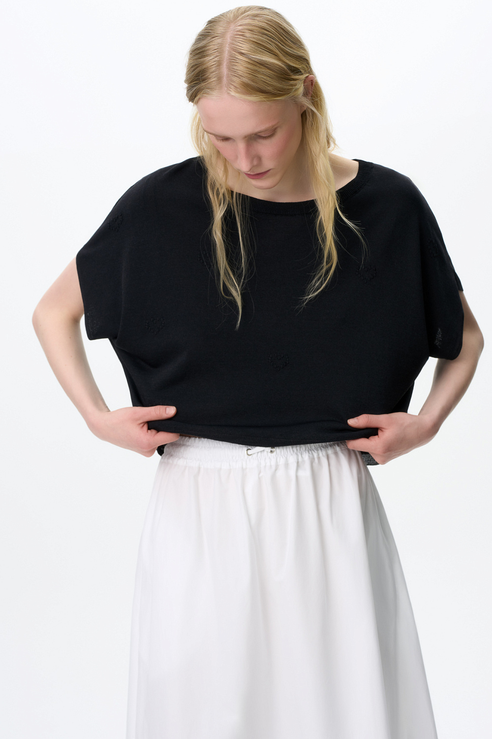 Knitted viscose T-shirt with a heart pattern and short sleeves.