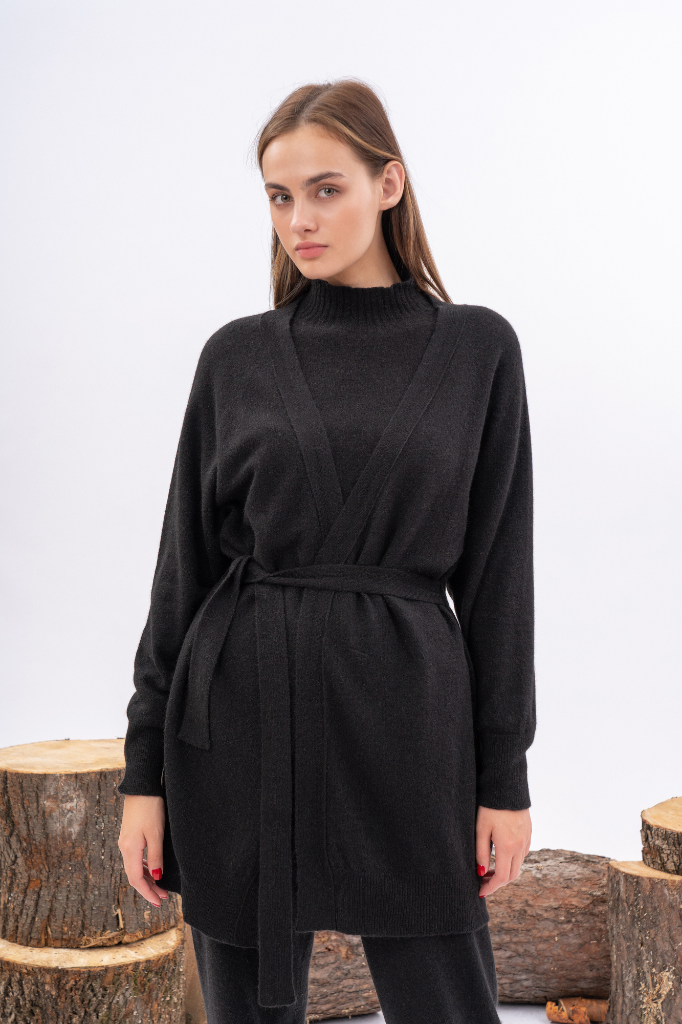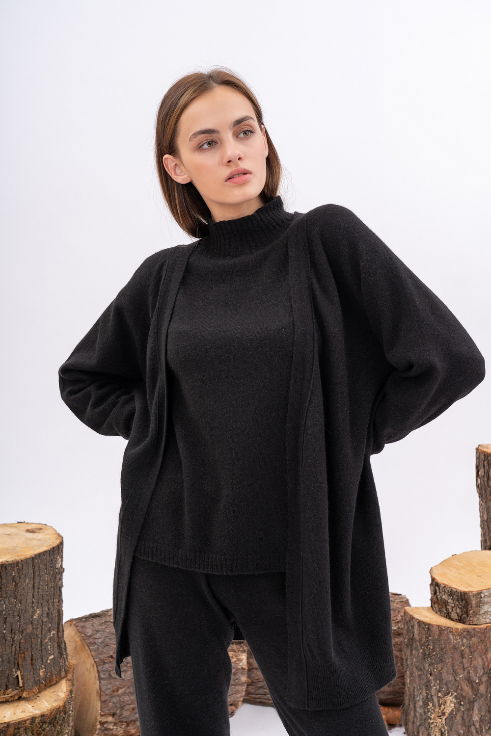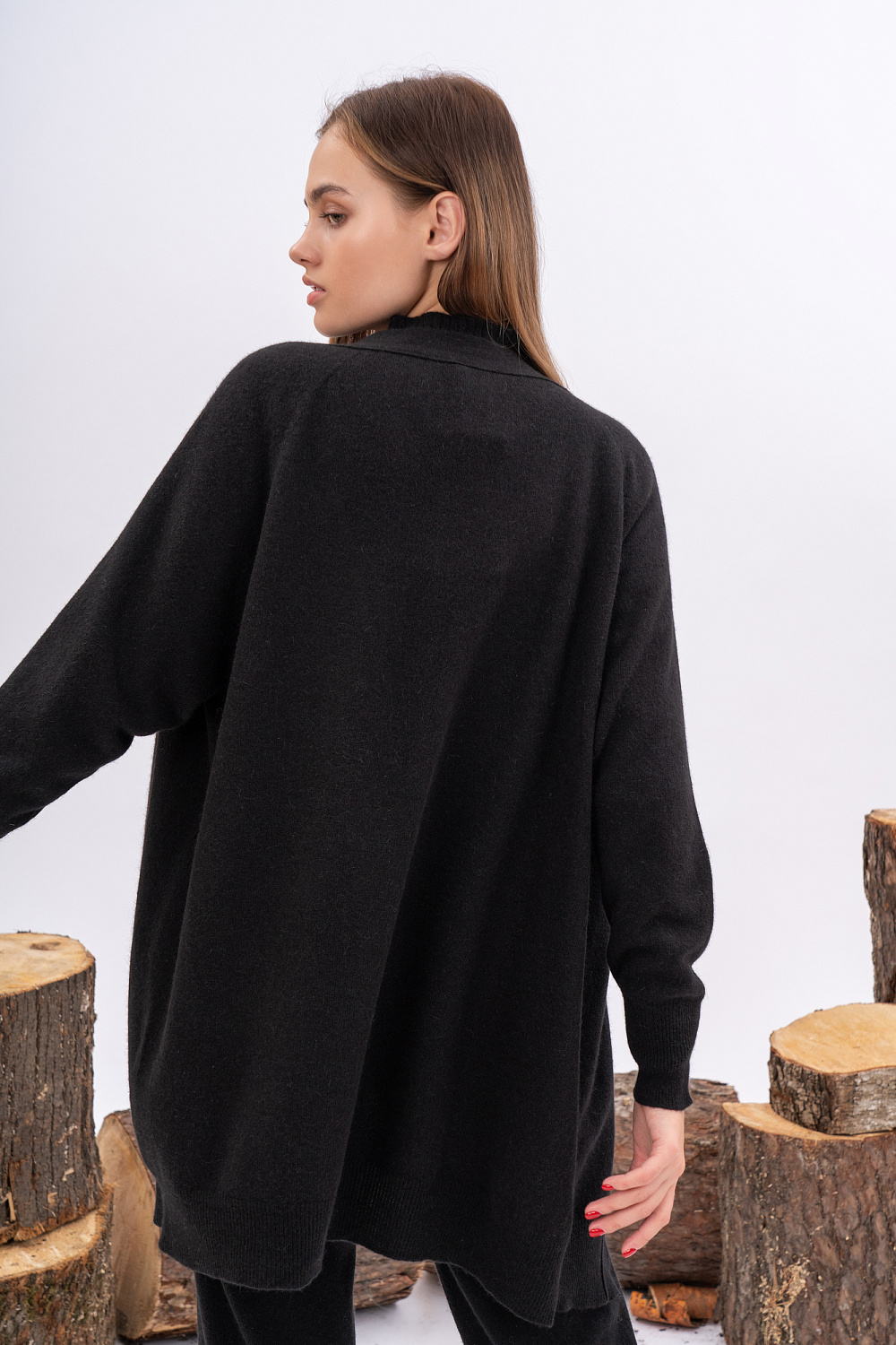 Classic cardigan without fastenings. Medium length.