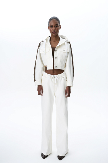 Basic 100% cotton cardigan with dropped sleeves and V-neck. Wide ribbed cuffs and hem.