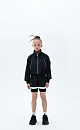 A cropped children's bomber jacket in a sporty style with pockets on the sides and blue piping. Cuffs and hem with elastic band. Lining with mesh elements on the sides. You can complement the look with shorts in the same style.
