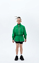 A cropped children's bomber jacket in a sporty style with pockets on the sides and blue piping. Cuffs and hem with elastic band. Lining with mesh elements on the sides. You can complement the look with shorts in the same style.