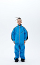 Children's jacket in a sporty style with pockets on the sides, blue piping and wide stripes. Branded label on the chest. Lined with mesh on the sides and a stand-up collar. You can complement the look with trousers or shorts in the same style.
