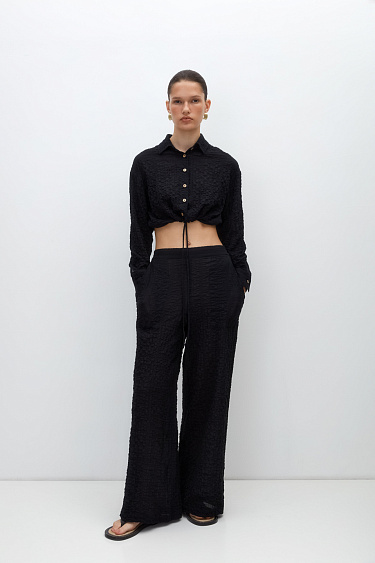 Cropped cotton gauze shirt with drawstring and button closure. You can complete the look with pants made of the same fabric.
