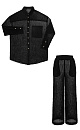 Classic loose shirt with a patch pocket on the chest and dropped shoulders. Straight-fit pants with side pockets and an elastic waistband.
