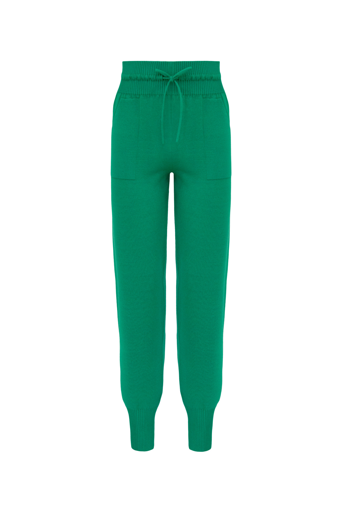Knitted sports trousers. Straight fit with high ribbed elastic cuffs, adjustable drawstring waistband and side pockets.